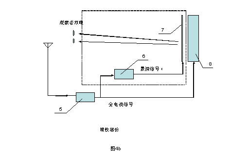 圖4b,新型立體電視系統的接收部份的框圖。其中虛線部份,即是在普通電視系統基礎上新增的部份。