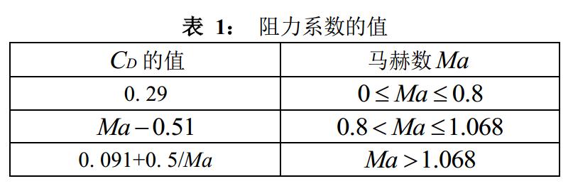 通過查閱相關(guān)參數(shù)數(shù)據(jù)得到衛(wèi)星質(zhì)量m=13200kg, 并假設(shè)衛(wèi)星受阻面積為16m2, 對(duì)地軌道速度為7800 m/s, 即Ma= 22.9. 從表 1中我們可以得到相應(yīng)的CD=0.11283. 從ρ(h)函數(shù)關(guān)系可以解出如下表所示的在一些特定高度的大氣密度估計(jì)值.