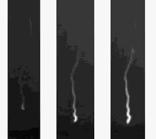 如圖2,是同一個閃電300倍慢放中的三個截圖。