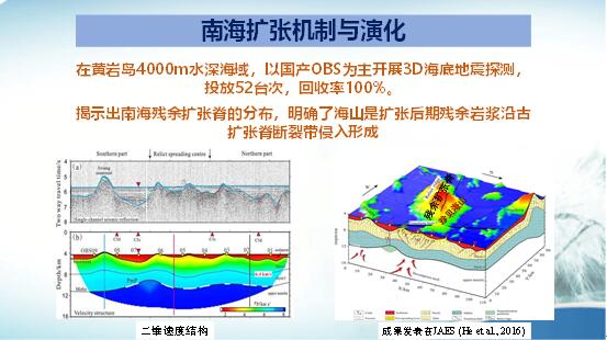 我國在南海地區實施了用纜繩傳輸在海底布設觀測網所得的數據,每年在南海投放80-90臺海底地震儀進行三維觀測,用廣義射線追蹤方法得出了這一地區的地下結構。我國布設的水聲計也記錄到外國潛艇在我國南?;顒拥淖C據。